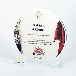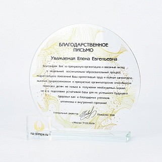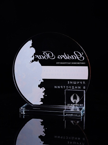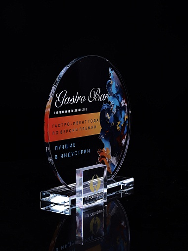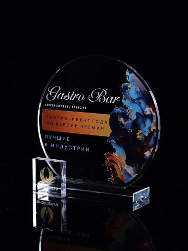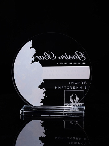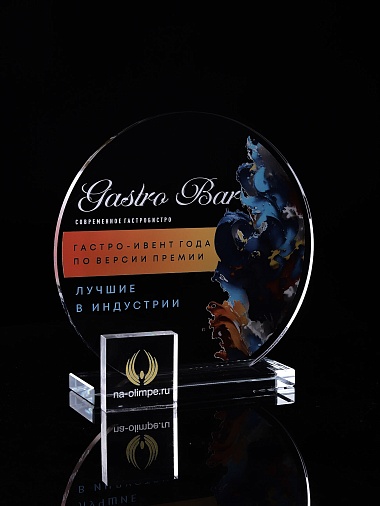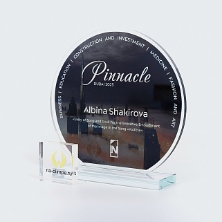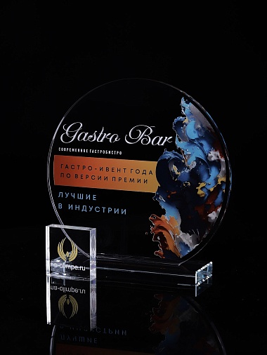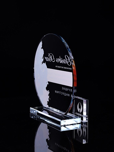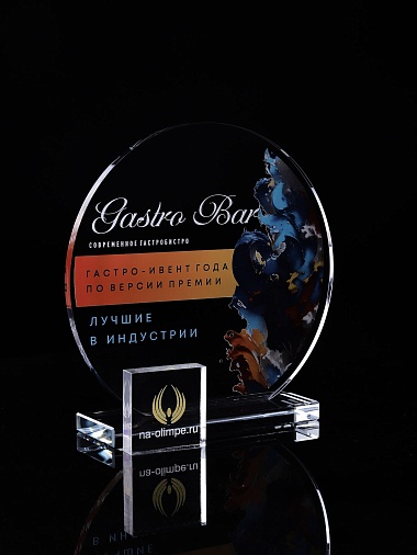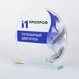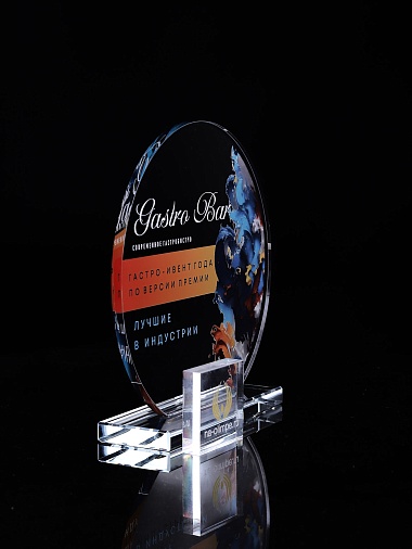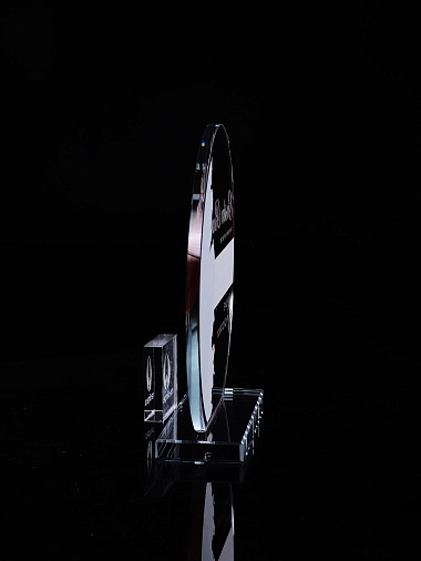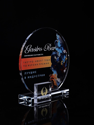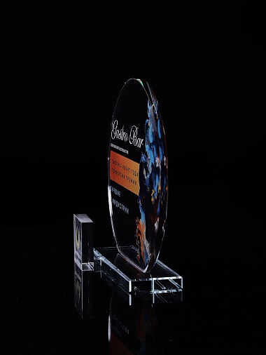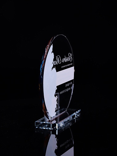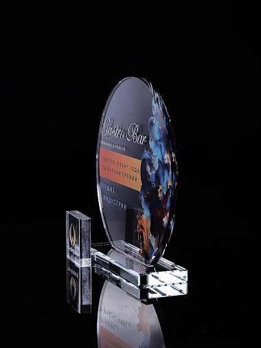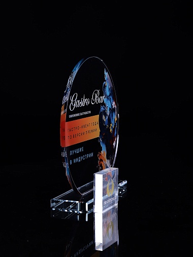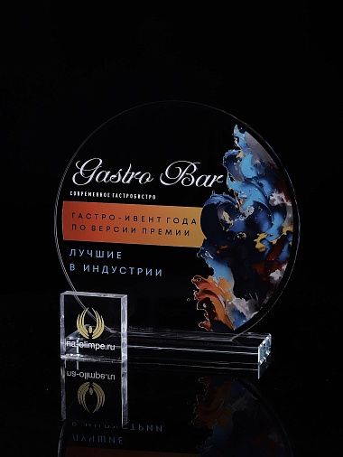 Стеклянная награда с полноцветным нанесением. Толщина стекла 6 мм. Толщина стекла постамента 10мм. Стоимость указана за нанесение на одной стороне, печать выполняется на передней стенке награды. Поставляется в крафтовой коробке.