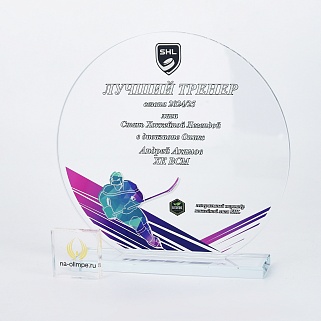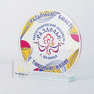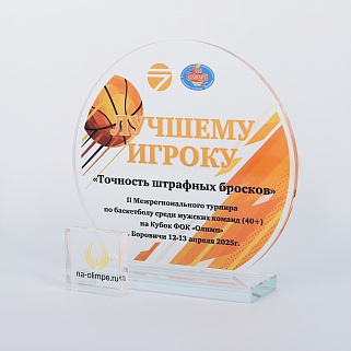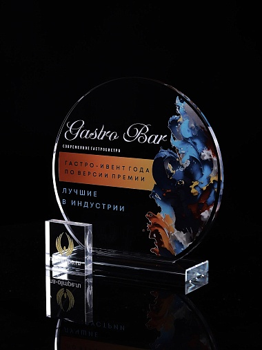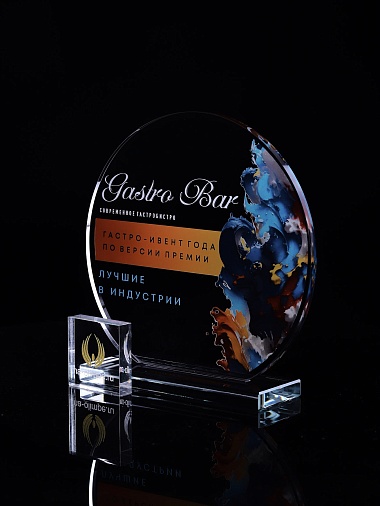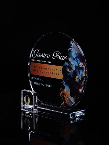 Стеклянная награда T03M с цветным нанесением, высота 18.5 см