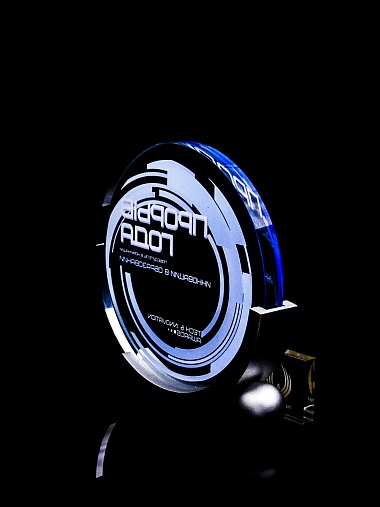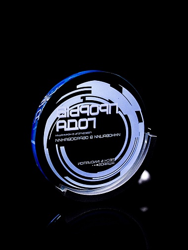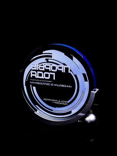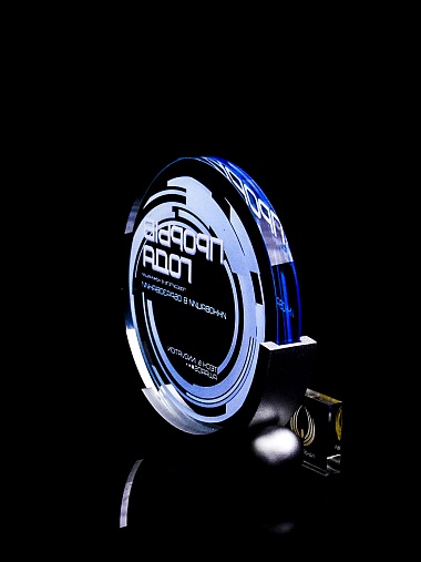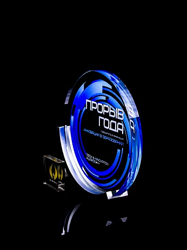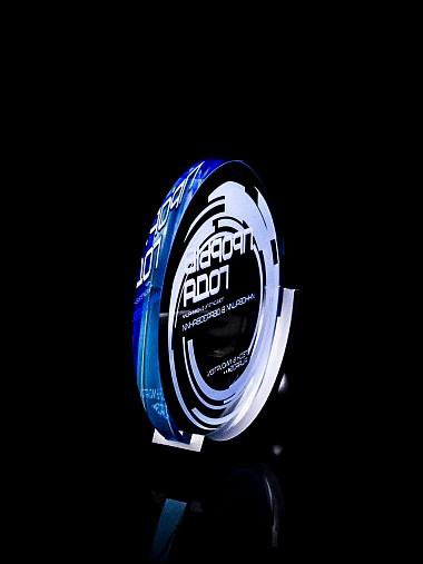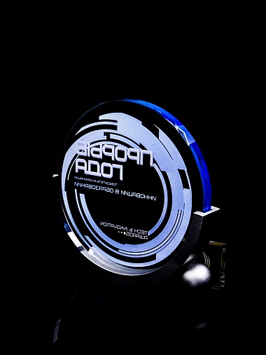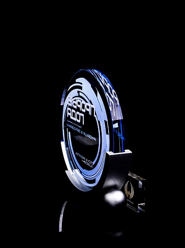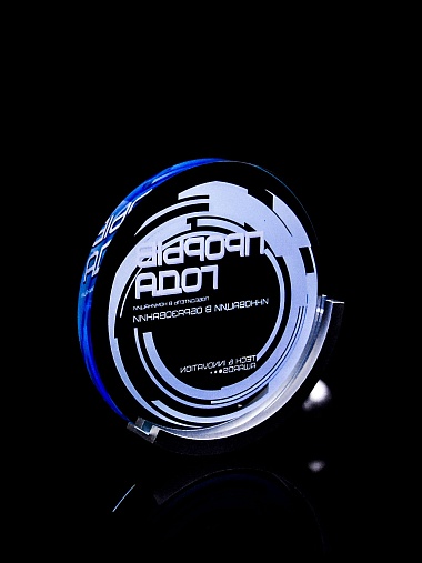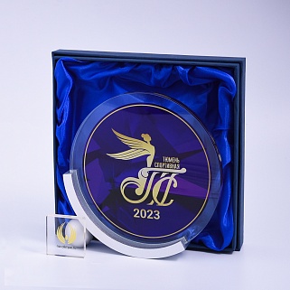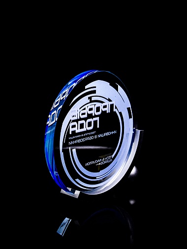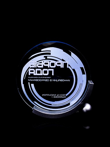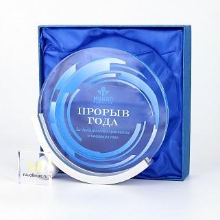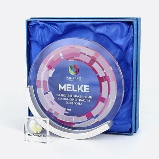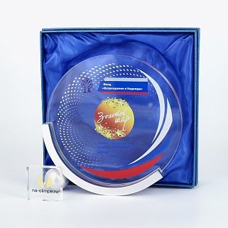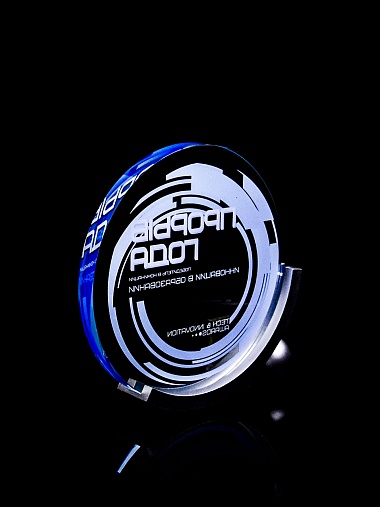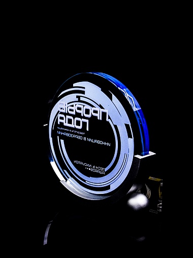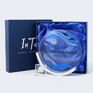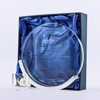 Стеклянная награда с полноцветным нанесением. Толщина стекла 15 мм. Поставляется в комплекте с подарочным футляром. Вес награды без футляра 869гр. Стоимость указана за нанесение на лицевой и оборотной стороне награды.