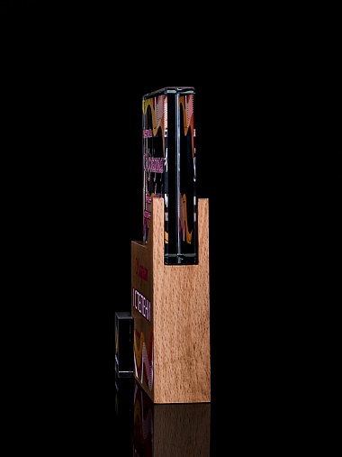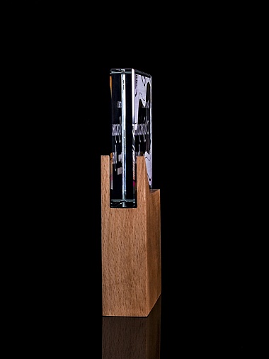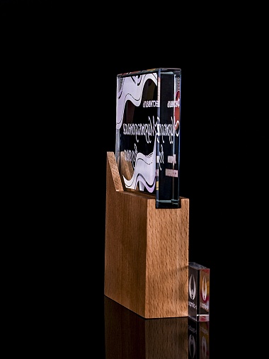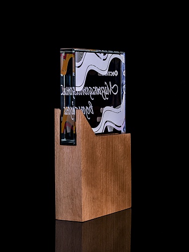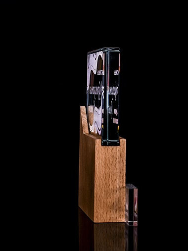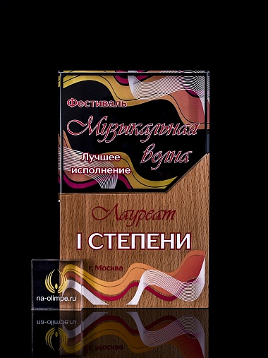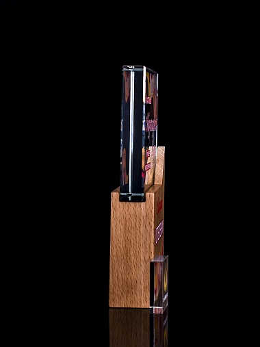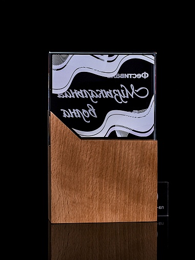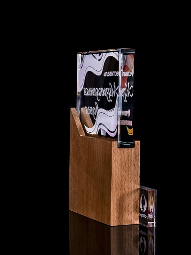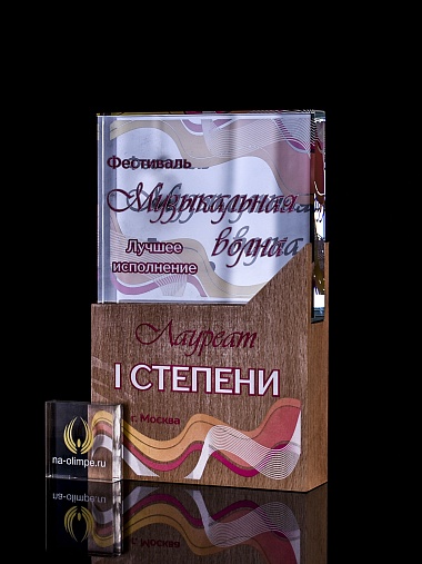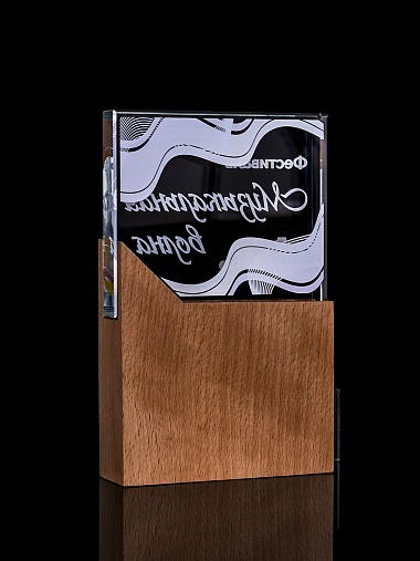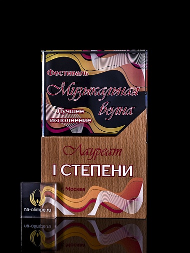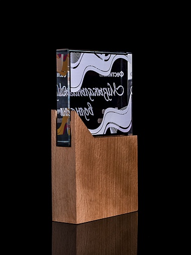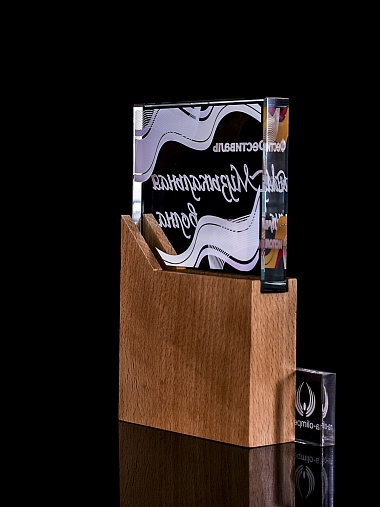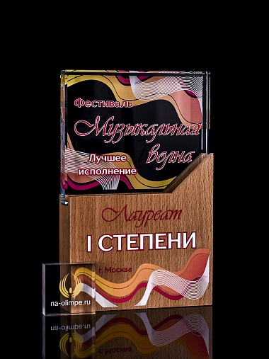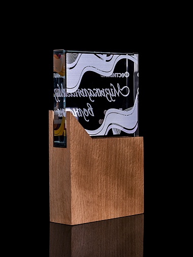 Награда из стекла и дерева с полноцветным нанесением по вашему запросу. Толщина стекла 20 мм. Вес награды без футляра 850гр.