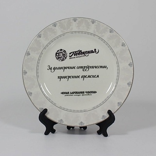 Тарелка с полноцветным нанесением любого текста или рисунка. Подставка для тарелки заказывается отдельно.
