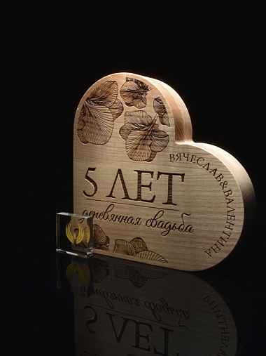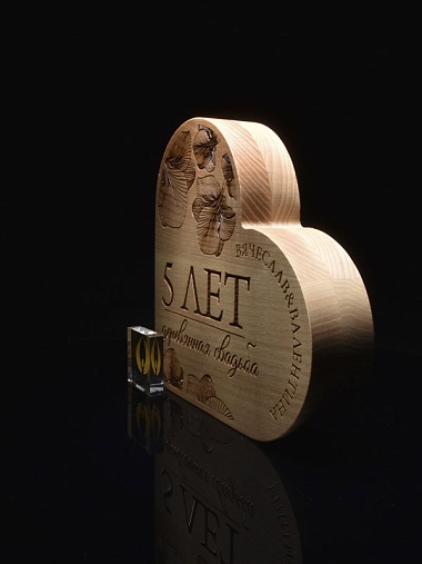 Естественный цвет дерева будет хорошо смотреться в любом интерьере. Персонализированное нанесение выполнено в виде лазерной гравировки. Стоимость указана за нанесение на одной стороне. Возможность нанесения на дополнительной стороне и стоимость этих работ можно уточнить у менеджеров.