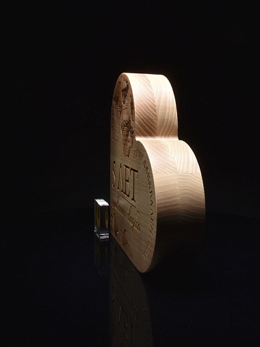 Деревянная награда премиум класса. Изготовлена из натурального дерева. Теплый, фактурный природный материал приятно держать в руке. Награда выполнена без пустот, поэтому имеет заметный вес.