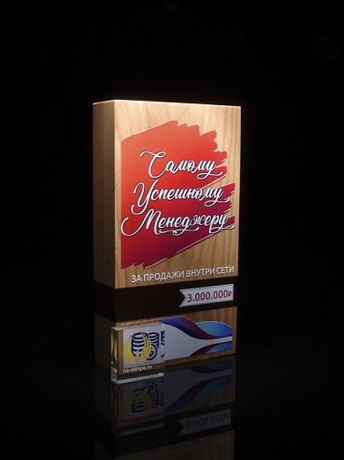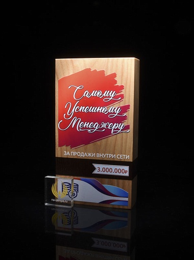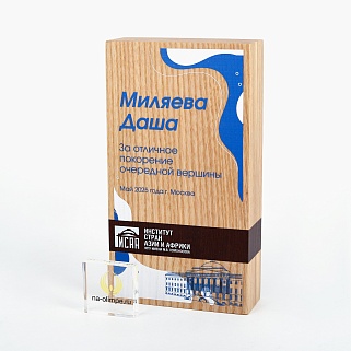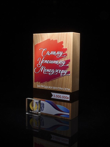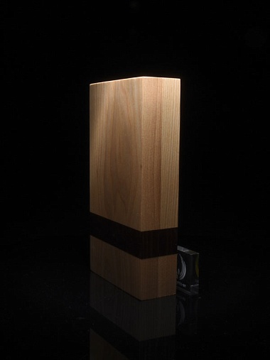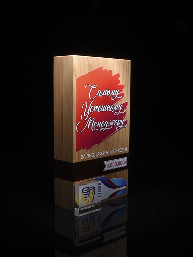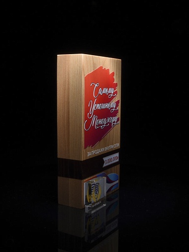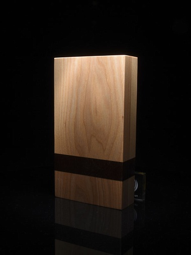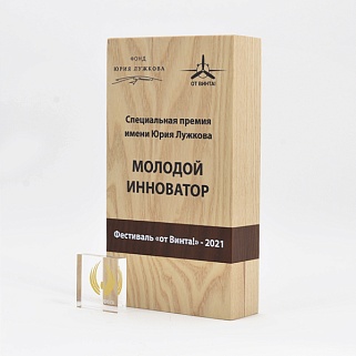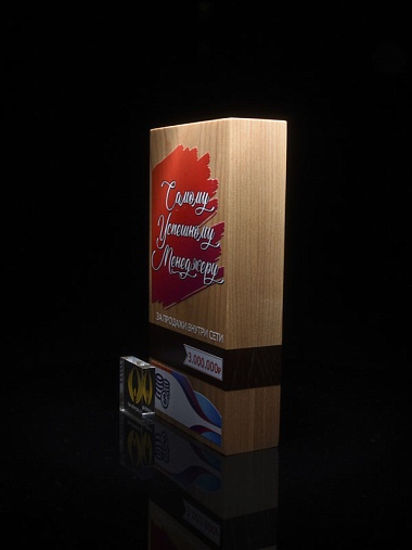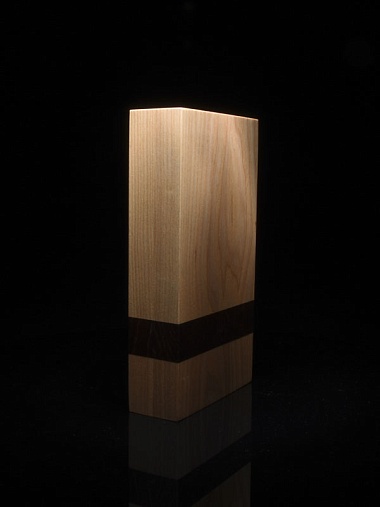 Деревянная награда премиум класса со вставкой из термоясеня. Изготовлена из натурального дерева. Теплый, фактурный природный материал приятно держать в руке. Награда выполнена без пустот, поэтому имеет заметный вес.
