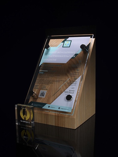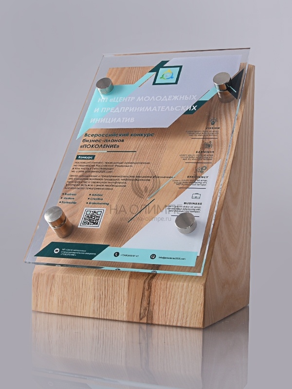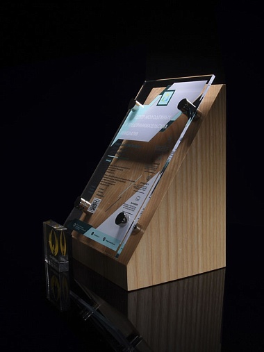 Деревянная награда премиум класса. Изготовлена из натурального дерева. Теплый, фактурный природный материал приятно держать в руке. Награда выполнена без пустот, поэтому имеет заметный вес.