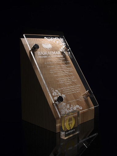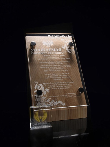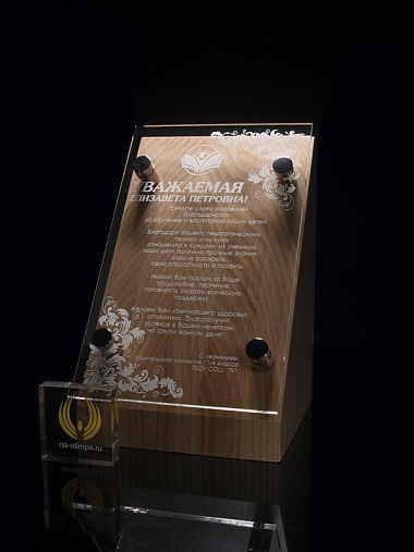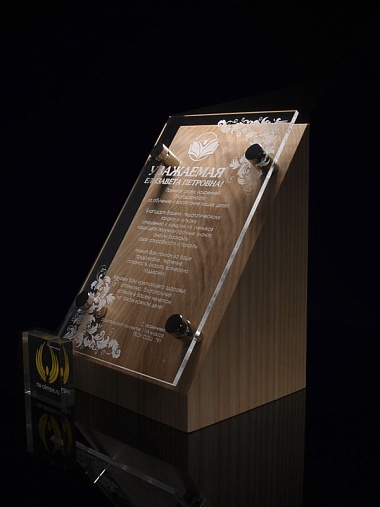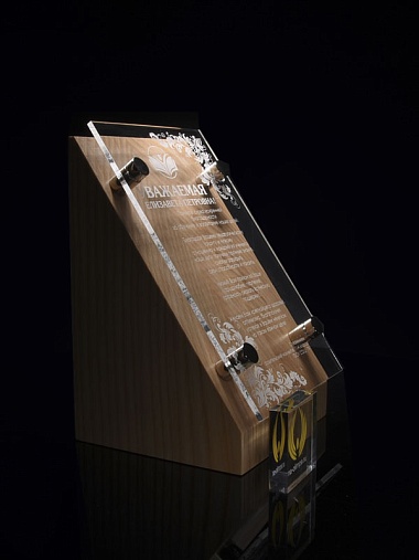 Деревянная награда премиум класса. Изготовлена из натурального дерева. Теплый, фактурный природный материал приятно держать в руке. Награда выполнена без пустот, поэтому имеет заметный вес.