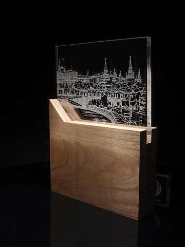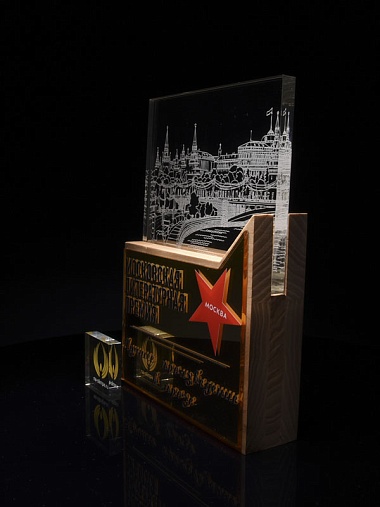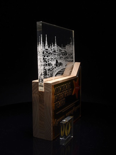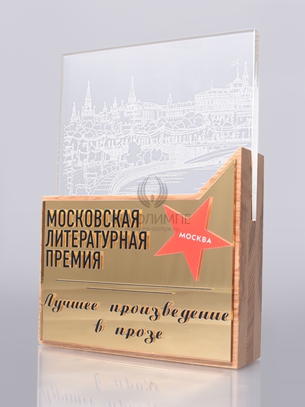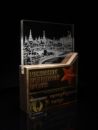 Деревянная награда премиум класса. Изготовлена из натурального дерева и акрила. Теплый, фактурный природный материал приятно держать в руке. Награда выполнена без пустот, поэтому имеет заметный вес. Коробка не входит в комплект. Приобретается отдельно (арт.333629).