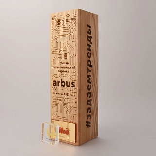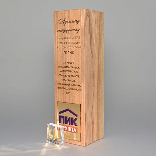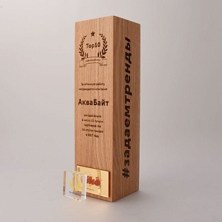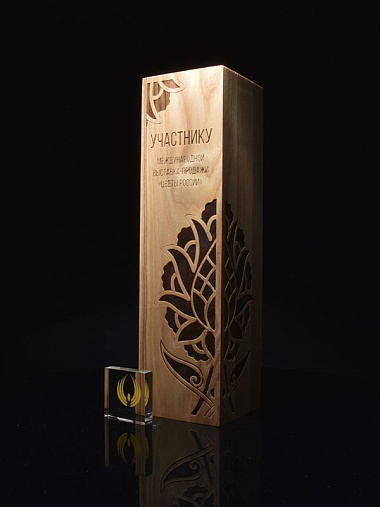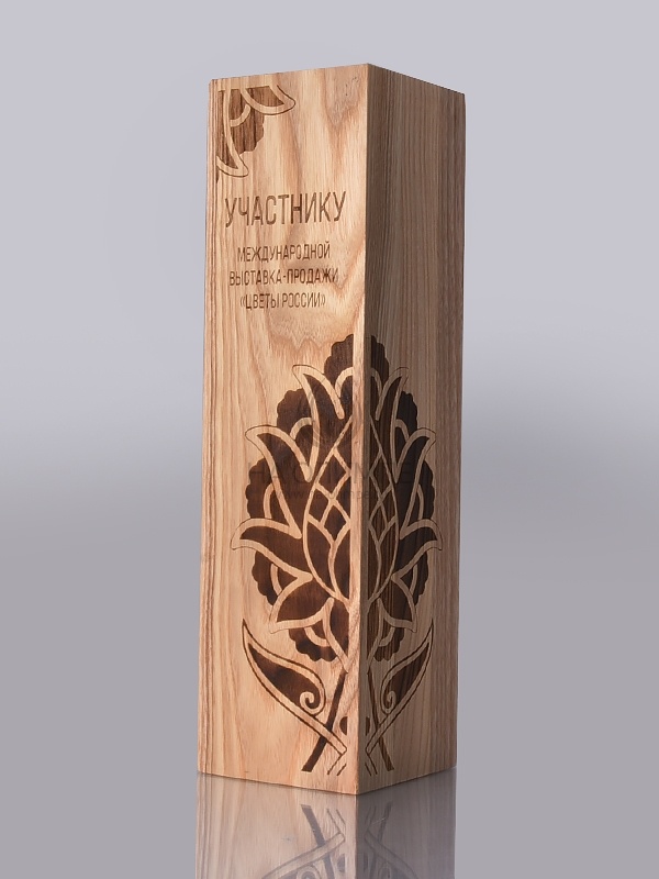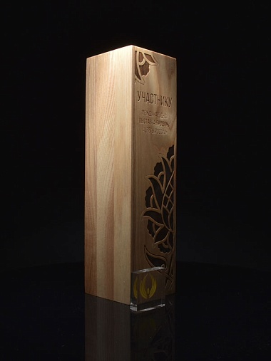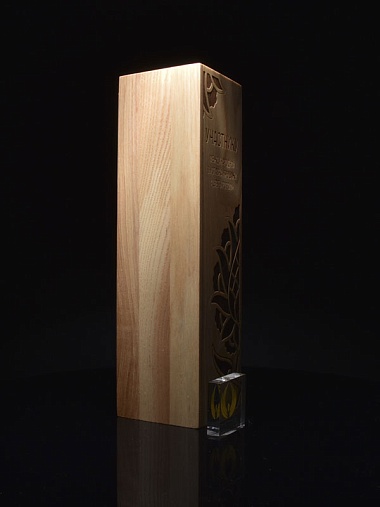 Деревянная награда премиум класса. Изготовлена из натурального дерева. Теплый, фактурный природный материал приятно держать в руке. Награда выполнена без пустот, поэтому имеет заметный вес.