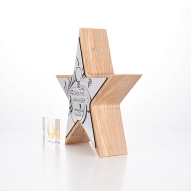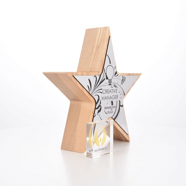 Деревянная награда премиум класса. Изготовлена из натурального дерева. Теплый, фактурный природный материал приятно держать в руке. Награда выполнена без пустот, поэтому имеет заметный вес.