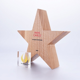 Деревянная награда премиум класса. Изготовлена из натурального дерева. Теплый, фактурный природный материал приятно держать в руке. Награда выполнена без пустот, поэтому имеет заметный вес. Естественный цвет дерева будет хорошо смотреться в любом интерьере.