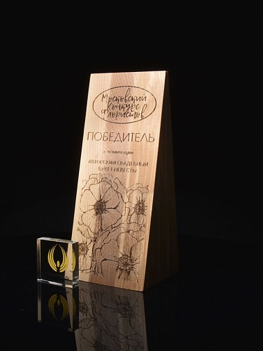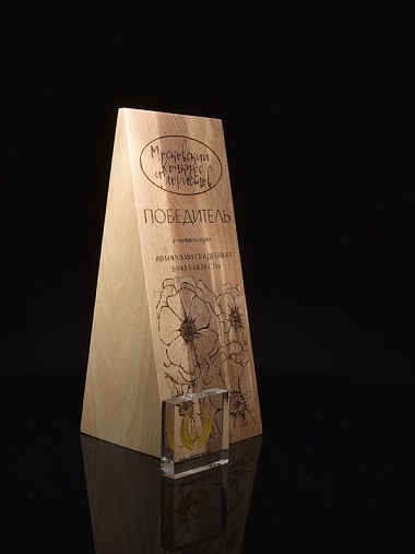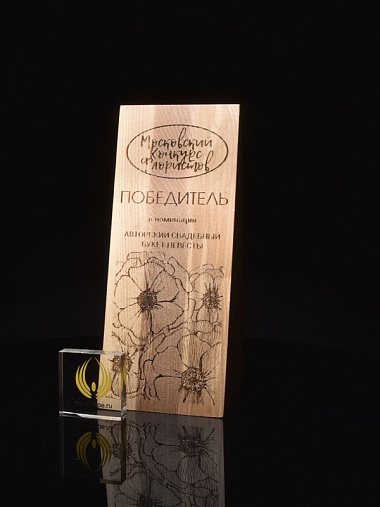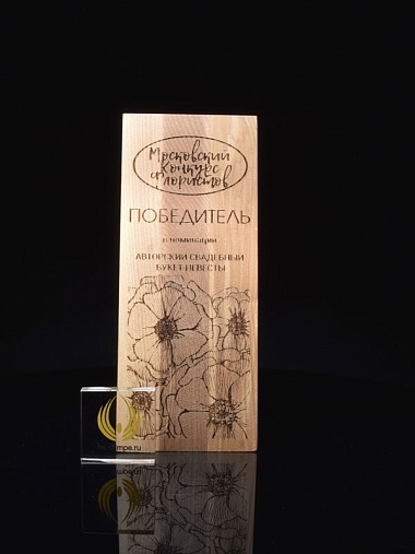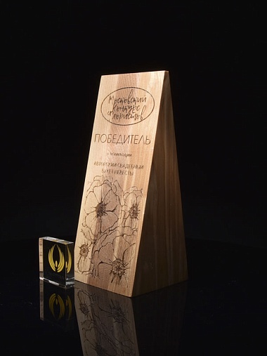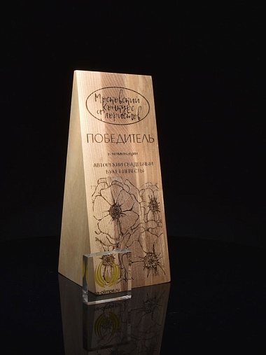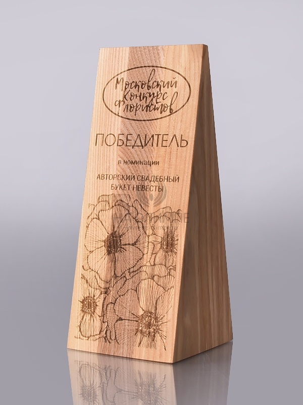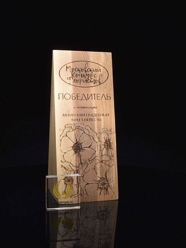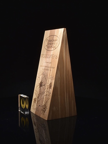 Деревянная награда премиум класса. Изготовлена из натурального дерева. Теплый, фактурный природный материал приятно держать в руке. Награда выполнена без пустот, поэтому имеет заметный вес.