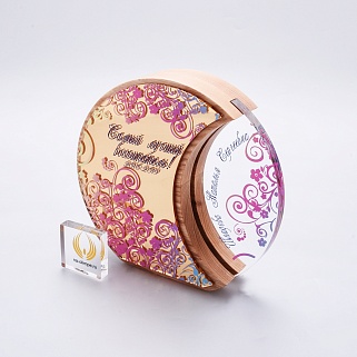 Естественный цвет дерева будет хорошо смотреться в любом интерьере. Персонализированное нанесение выполнено в виде полноцветной печати на бронзовом пластике. Стоимость указана за нанесение на одной стороне. Возможность нанесения на дополнительной стороне и стоимость этих работ можно уточнить у менеджеров. Коробка не входит в комплект. Приобретается отдельно (арт.333629).