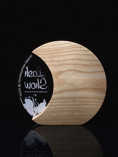 Деревянная награда премиум класса. Изготовлена из натурального дерева. Теплый, фактурный природный материал приятно держать в руке. Награда выполнена без пустот, поэтому имеет заметный вес.