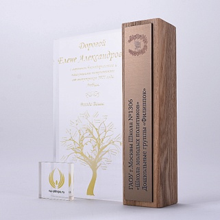 Деревянная награда премиум класса. Изготовлена из натурального дерева. Теплый, фактурный природный материал приятно держать в руке. Награда выполнена без пустот, поэтому имеет заметный вес.