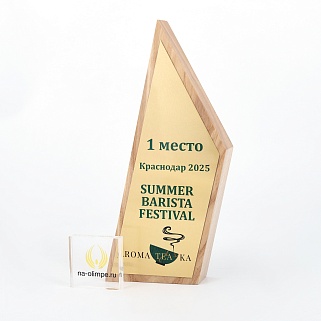 Деревянная награда премиум класса. Изготовлена из натурального дерева. Теплый, фактурный природный материал приятно держать в руке. Награда выполнена без пустот, поэтому имеет заметный вес.