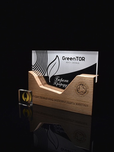 Деревянная награда премиум класса. Изготовлена из натурального дерева. Теплый, фактурный природный материал приятно держать в руке. Награда выполнена без пустот, поэтому имеет заметный вес. Естественный цвет дерева будет хорошо смотреться в любом интерьере.