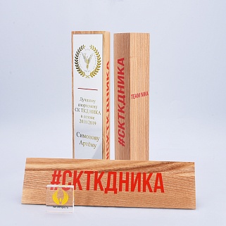 Деревянная награда премиум класса. Изготовлена из натурального дерева. Теплый, фактурный природный материал приятно держать в руке. Награда выполнена без пустот, поэтому имеет заметный вес.
