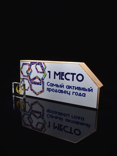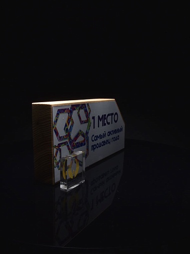 Деревянная награда премиум класса. Изготовлена из натурального дерева. Теплый, фактурный природный материал приятно держать в руке. Награда выполнена без пустот, поэтому имеет заметный вес.