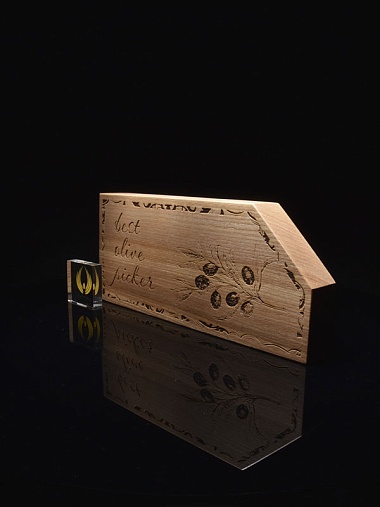 Естественный цвет дерева будет хорошо смотреться в любом интерьере. Персонализированное нанесение выполнено в виде лазерной гравировки по дереву. Стоимость указана за нанесение на одной стороне. Возможность нанесения на дополнительной стороне и стоимость этих работ можно уточнить у менеджеров.