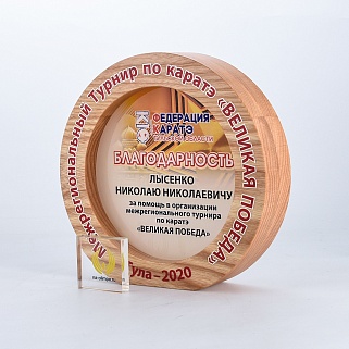 Деревянная награда премиум класса. Изготовлена из натурального дерева. Теплый, фактурный природный материал приятно держать в руке. Награда выполнена без пустот, поэтому имеет заметный вес.