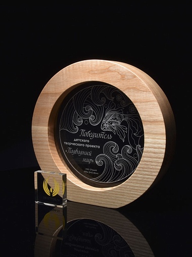 Деревянная награда премиум класса. Изготовлена из натурального дерева. Теплый, фактурный природный материал приятно держать в руке. Награда выполнена без пустот, поэтому имеет заметный вес.