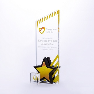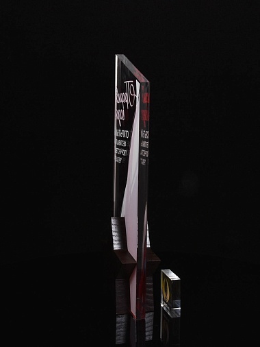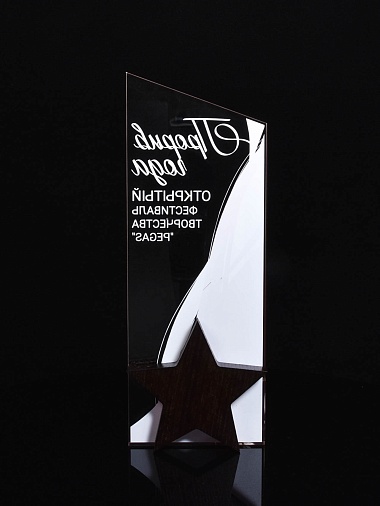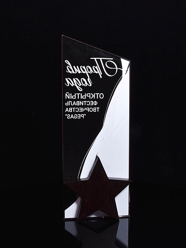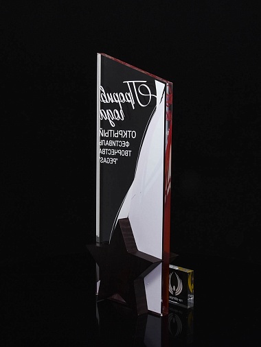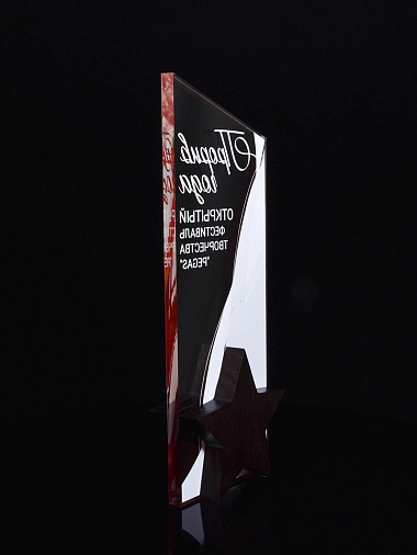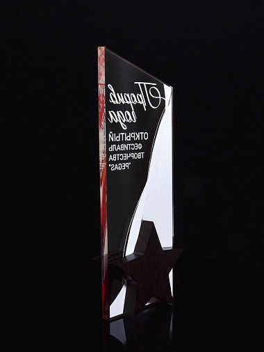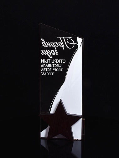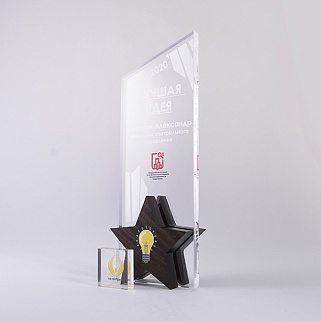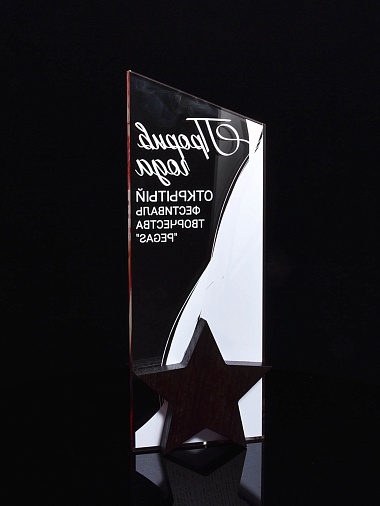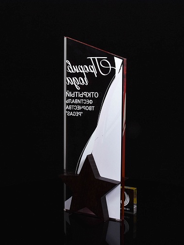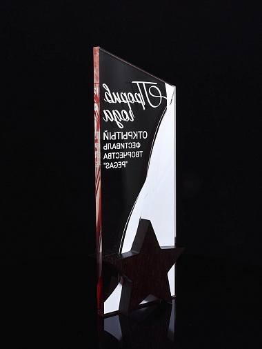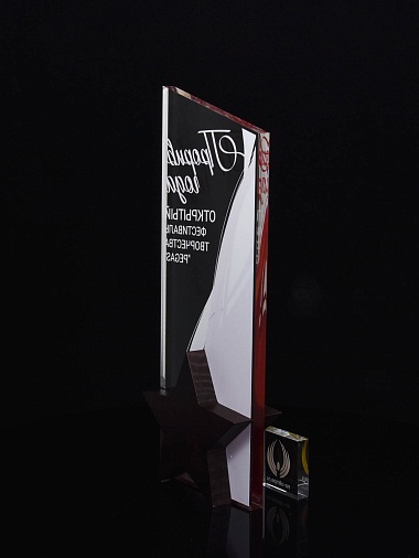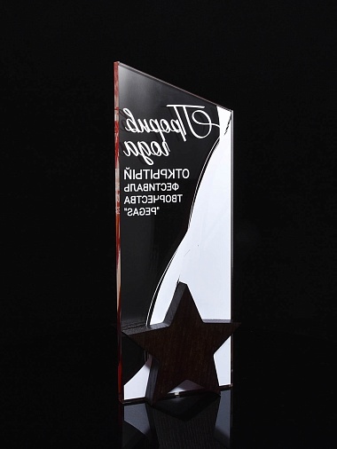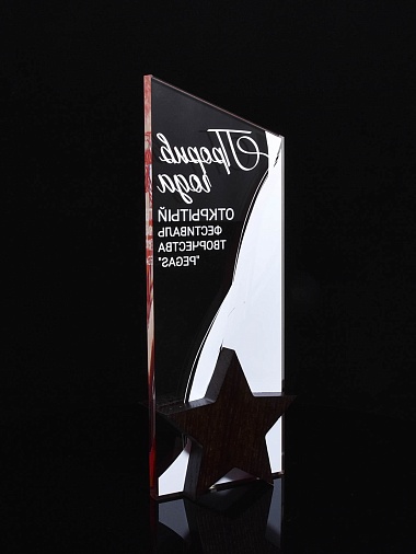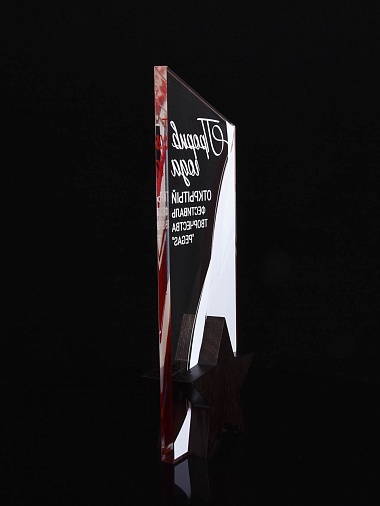 Деревянная награда премиум класса. Изготовлена из натурального дерева и акрила. Теплый, фактурный природный материал приятно держать в руке. Награда выполнена без пустот, поэтому имеет заметный вес.