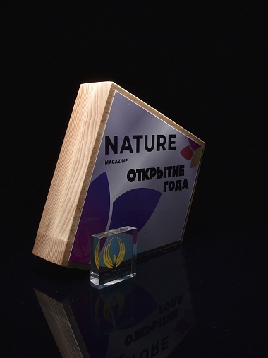 Деревянная награда премиум класса. Изготовлена из натурального дерева. Теплый, фактурный природный материал приятно держать в руке. Награда выполнена без пустот, поэтому имеет заметный вес.