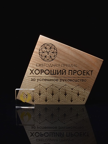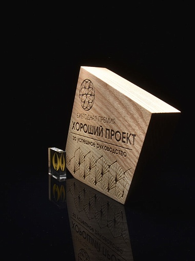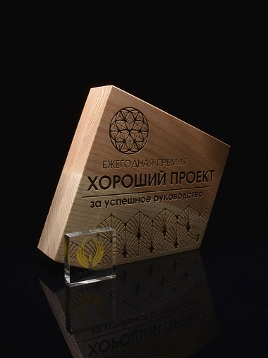 Деревянная награда премиум класса. Изготовлена из натурального дерева. Теплый, фактурный природный материал приятно держать в руке. Награда выполнена без пустот, поэтому имеет заметный вес.