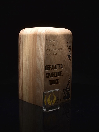 Деревянная награда премиум класса. Изготовлена из натурального дерева. Теплый, фактурный природный материал приятно держать в руке. Награда выполнена без пустот, поэтому имеет заметный вес.