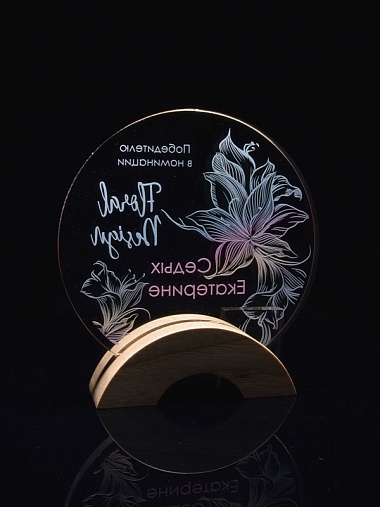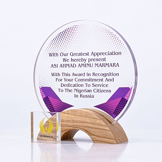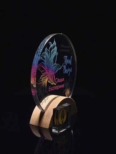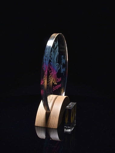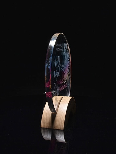 Деревянная награда премиум класса. Изготовлена из натурального дерева. Теплый, фактурный природный материал приятно держать в руке. Награда выполнена без пустот, поэтому имеет заметный вес.
