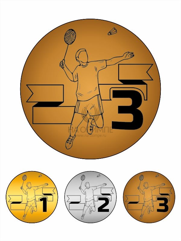 Вкладыш самоклеющийся D2 S56 1место Бадминтон, диаметр вкладыша 50 мм