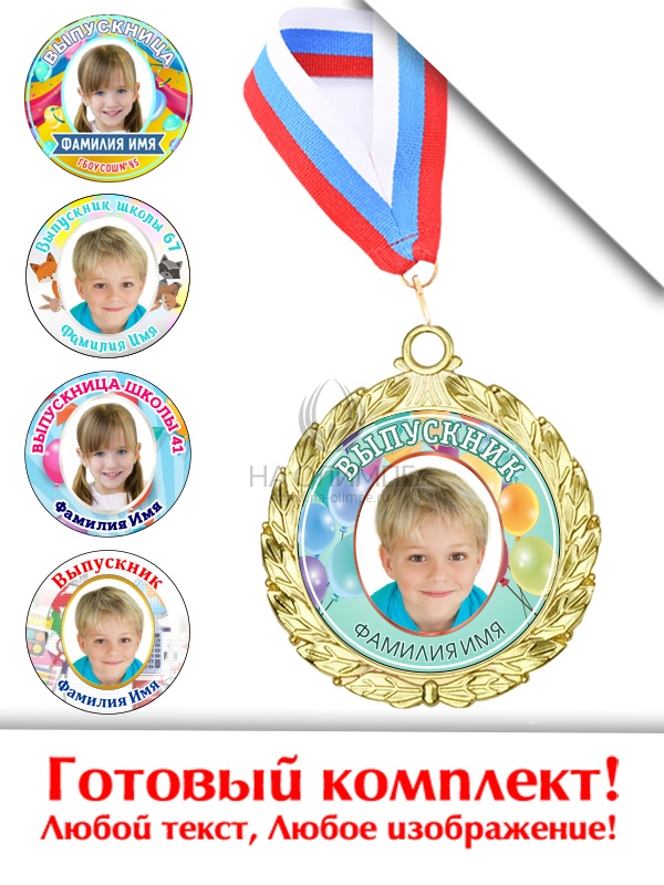 Выпускная медаль с фото NFZ 36 с текстильной лентой, вид ленты текстильная
