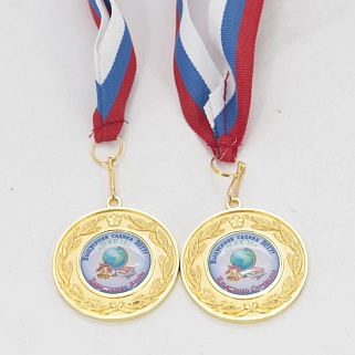 Выпускная медаль с заливным вкладышем MD Rus 451 G, вид ленты текстильная