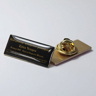 Заливной латунный значок 26*11мм. с полноцветной печатью. Цанговое крепление "бабочка". Минимальный тираж от 10 шт.