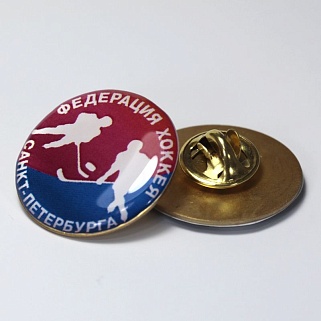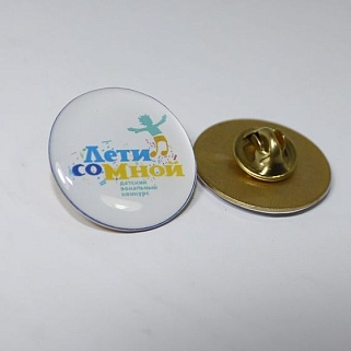 Заливной латунный значок d.25мм. с полноцветной печатью. Цанговое крепление "бабочка". Минимальный тираж от 10 шт.