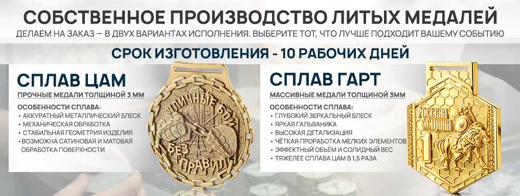 Несмотря на кажущуюся сложность, у нас вы можете купить литые медали дешево — без переплат за бренд и с гарантией качества. Цены остаются привлекательными при малых тиражах и при заказе оптом.