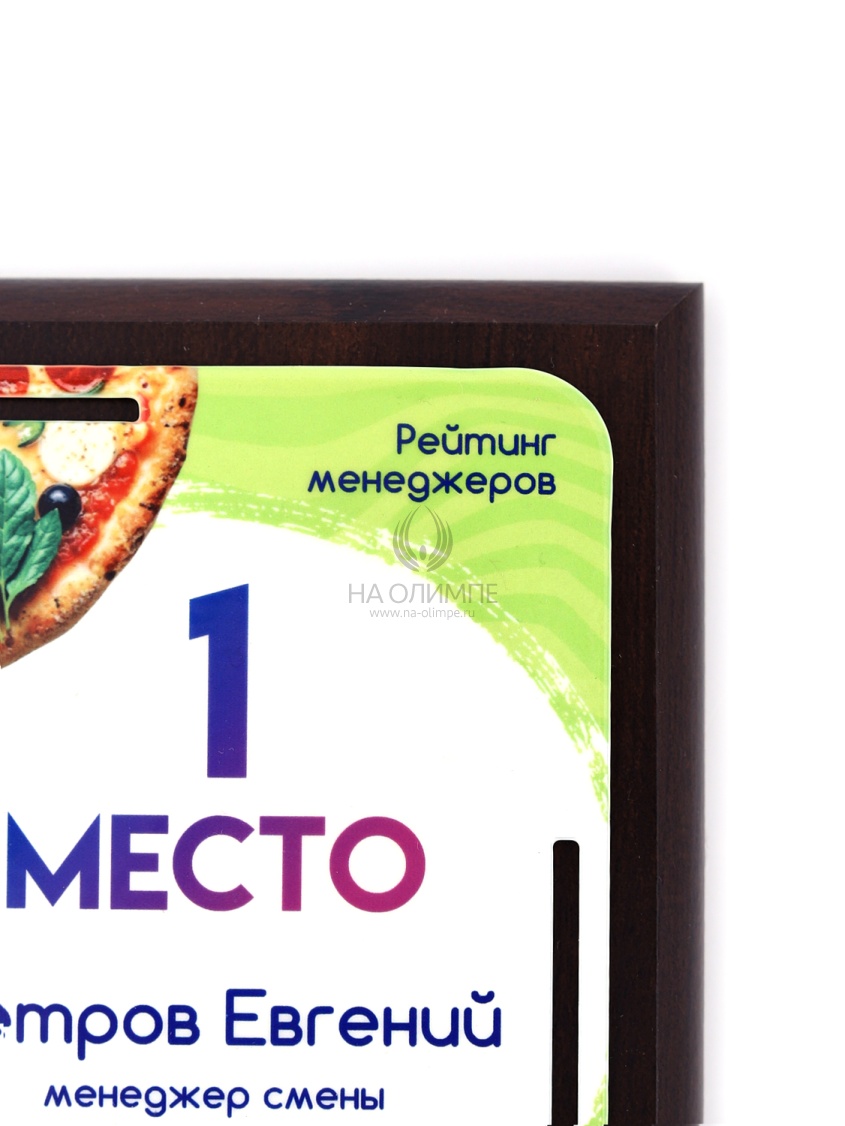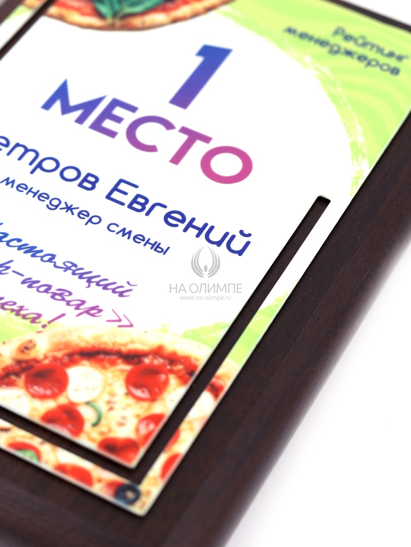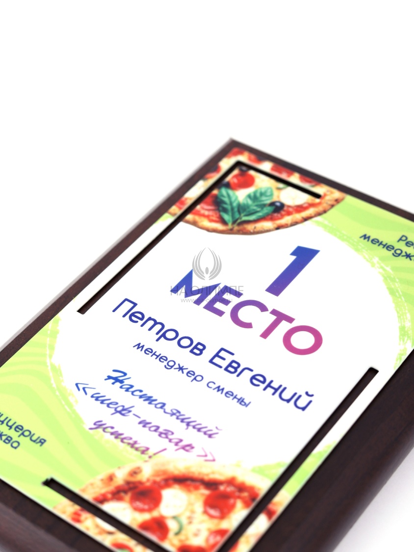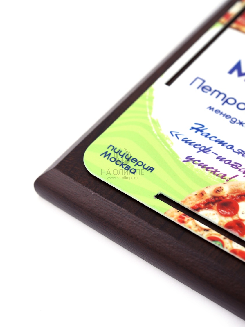 Деревянная плакетка в комплекте со стальной пластиной толщиной 1,2мм. Полноцветная сублимационная печать любого количества символов и изображений включена в стоимость.
