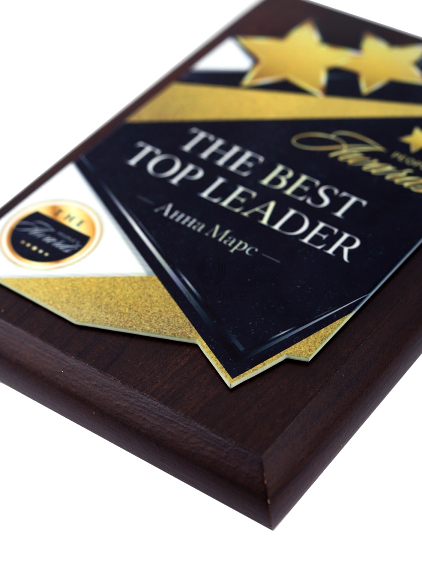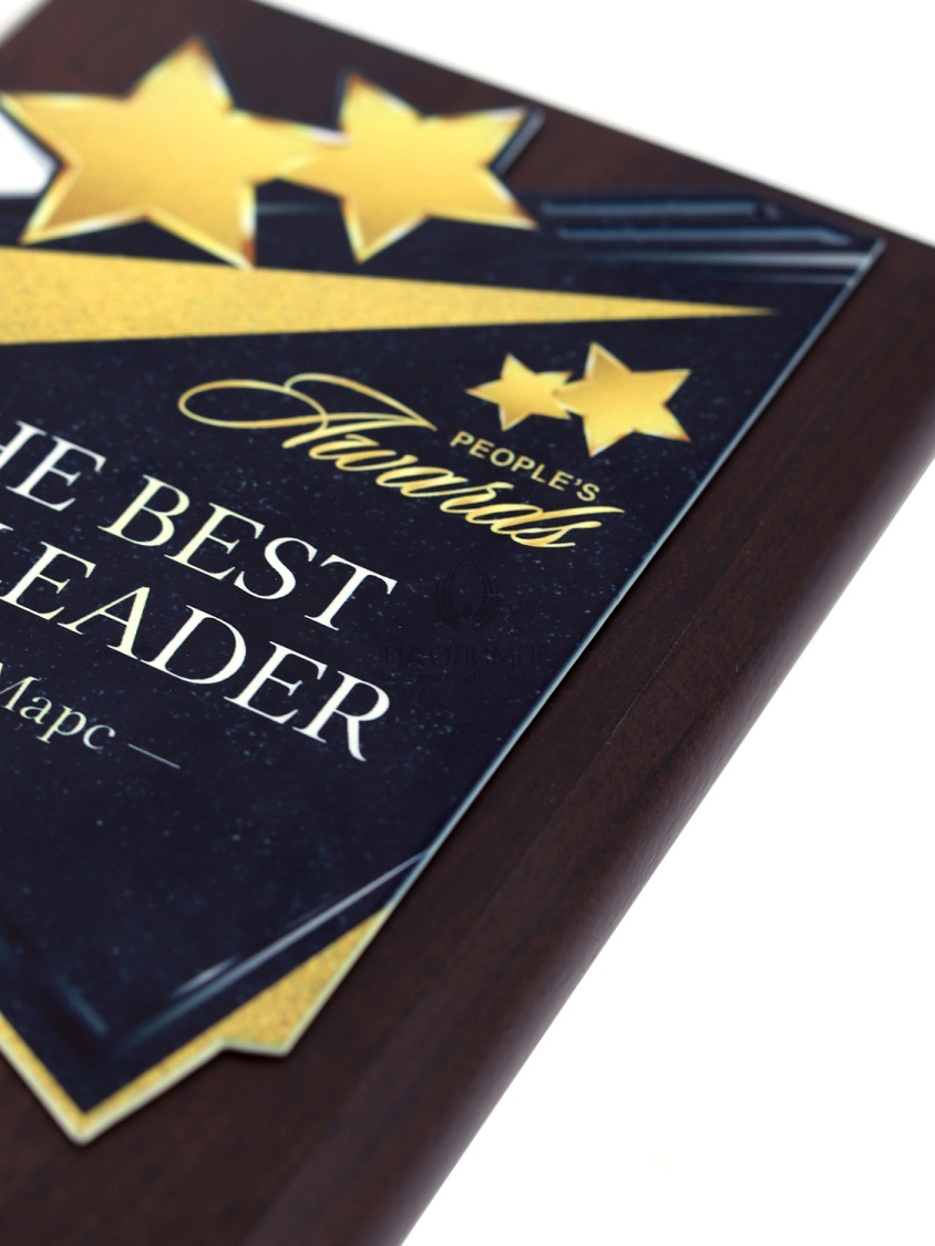 Деревянная плакетка в комплекте со стальной пластиной толщиной 1,2мм. Полноцветная сублимационная печать любого количества символов и изображений включена в стоимость.