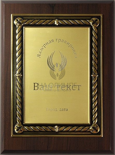 Плакетка из натурального дерева. В комплекте с металлической узорной накладкой. После гравировки раскрывается серебряным цветом. Нанесение любого количества символов и изображений включено в стоимость.