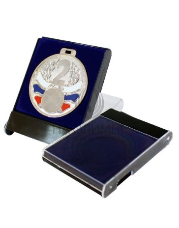 Футляр пластиковый с прозрачной крышкой. Ложемент синего цвета под бархат идеально подойдет для медалей диаметром от 50мм до 70мм.