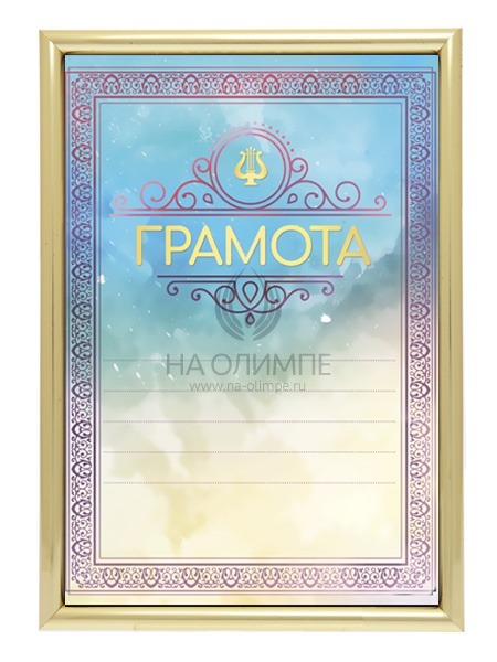 Комплект из пластиковой рамки и универсального бланка из мелованной бумаги плотностью 250 гр/м2. Хорошо подойдет для награждений победителей музыкальных и других творческих конкурсов. Подходит для печати на принтере !