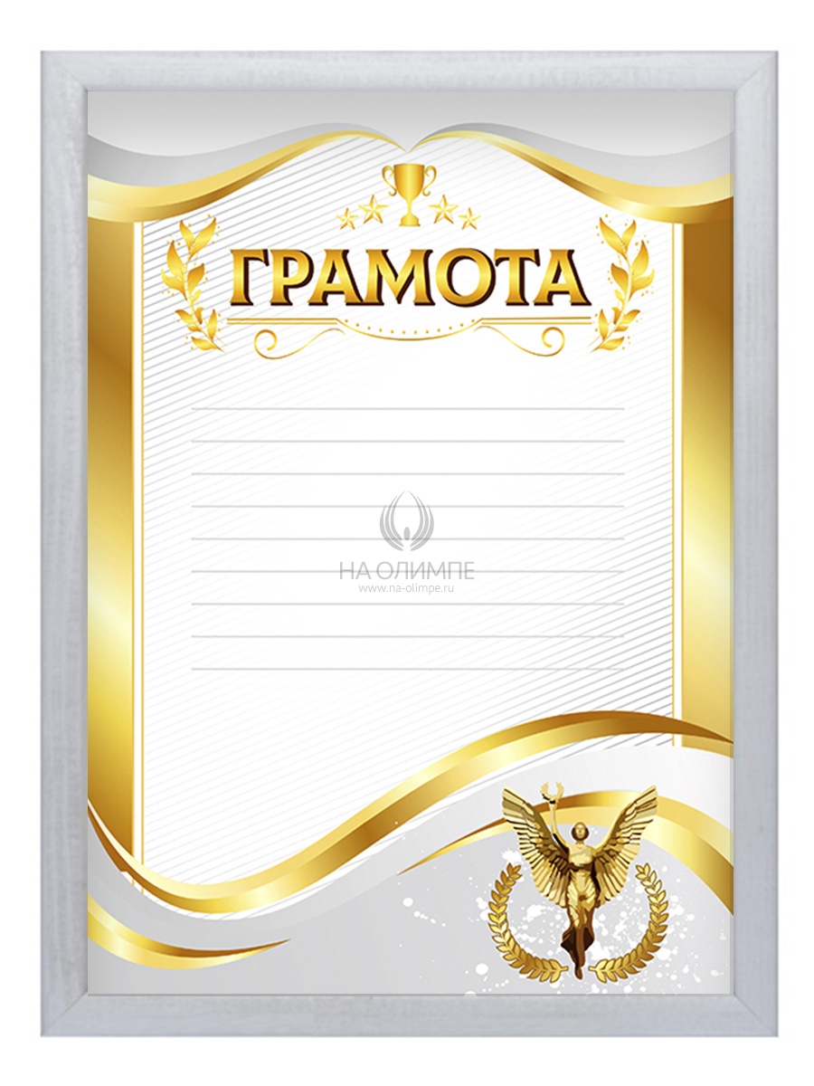 Комплект из пластиковой рамки и универсального бланка из мелованной бумаги плотностью 250 гр/м2. Одинаково хорошо подойдет как для награждений победителей спортивных соревнований, так и для вручений на официальных мероприятиях или праздниках.