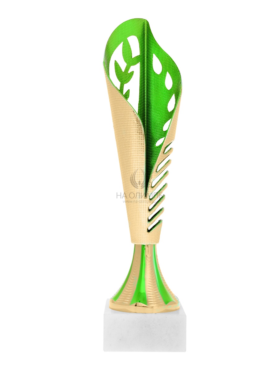 Кубок на основании из мрамора. Представляем вам зелёный пластиковый кубок на основании из мрамора. Мы понимаем, как важно сделать награду уникальной. Поэтому мы предлагаем услуги по изображению логотипа вашей компании, имя победителя или индивидуальное послание — все это можно легко нанести на таблички. Благодаря этому каждый трофей станет незабываемым.