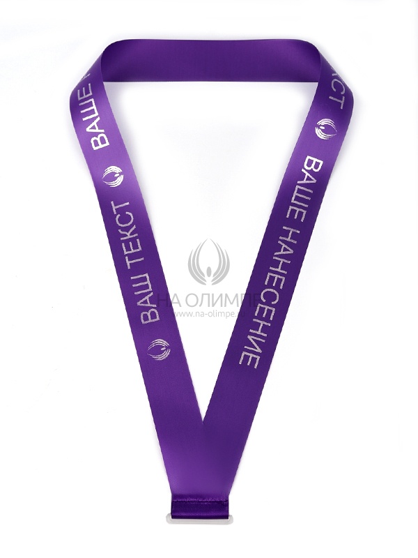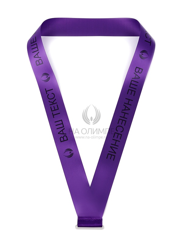 Лента сатин сшивная фиолетовая с золотым нанесением и акриловым креплением, цвет декора золотой