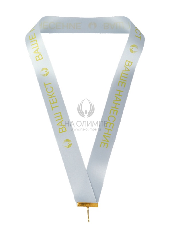 Лента сатин белая с золотым нанесением и карабином