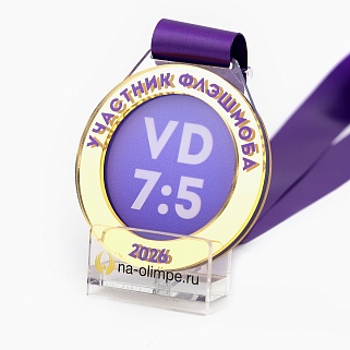 Медаль из акрила с полноцветной печатью по центру и по кругу. Нанесение текста и логотипа уже включены в стоимость.