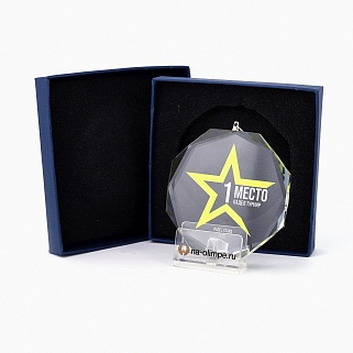 Медаль стеклянная C58 с цветным нанесением, высота 8.7 см