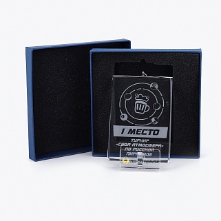 Медаль из стекла, толщиной 8мм. с нанесением лазерной гравировки. Лазерная гравировка производится на высокоточном оборудовании, что позволяет выполнить нанесение с практически любой степенью детализации. Гравировка не имеет видимого углубления внутрь награды, она выглядит и ощущается как матированное стекло. Размер стеклянной части 10х7 см. Поставляется в комплекте с подарочным футляром (цвет футляра и подложка могут отличаться). Вес награды без футляра 133гр.
