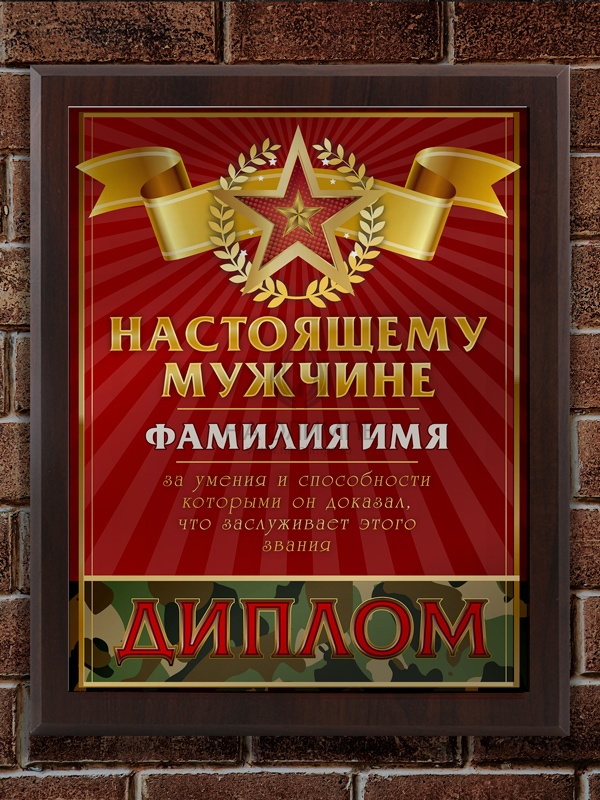 Деревянная плакетка в комплекте с металлической пластиной и готовым текстом.