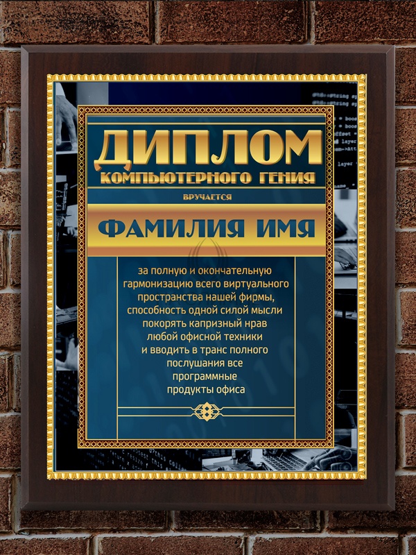 Деревянная плакетка в комплекте с металлической пластиной и готовым текстом.